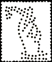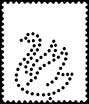 Una possibile spiegazione potrebbe essere quella che il fabbricante avesse previsto che l’utilizzatore praticasse la perforazione con la mano posta orizzontalmente. In questo caso il fumo della sigaretta andrebbe giustamente verso l’alto. A tale proposito ricordiamo che ogni perforazione rispetto alla normale posizione del francobollo sul quale è realizzata può presentarsi in otto posizioni (4 per la parte anteriore e 4 per la posteriore) a seconda di come il francobollo viene introdotto sotto la testa perforante, senza contare le eventuali altre otto posizioni trasversali. Comunque sia, questo perfin, oltre ad essere del tutto originale e probabilmente unico nel suo genere, lascia aperto un piccolo rebus a proposito del fumo, e di conseguenza della corretta posizione nella quale dovrebbe essere mostrato e catalogato. Per maggiore comprensione mostriamo il perfin colorato per meglio evidenziare la figura che rappresenta, nelle principali 4 posizioni che può assumere (mano sinistra o mano destra in verticale o in orizzontale). La posizione più convincente la scelga il lettore….